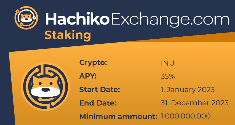 Hachiko Exchange staking rewards are source of passive income. The annual percentage yield (APY) is displayed below.